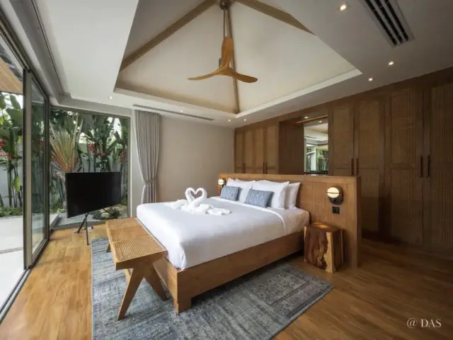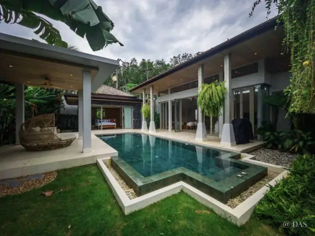 L'extérieur de cette villa est un havre de paix. En plus de l'exceptionnelle piscine, il y a Daybed et transats qui vous inviteront à vous reposer et vous détendre. Le jardin très bien entretenu joue entre les zones verdoyantes et les plateformes "en dur" avec terrasses et espaces en graviers. De quoi profiter pleinement du climat tropical de la Thaïlande.