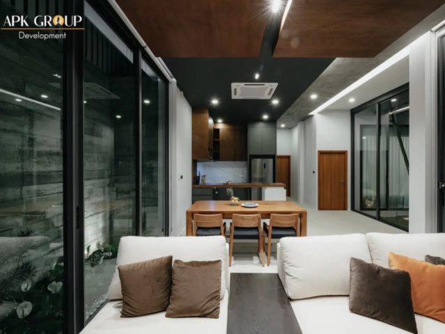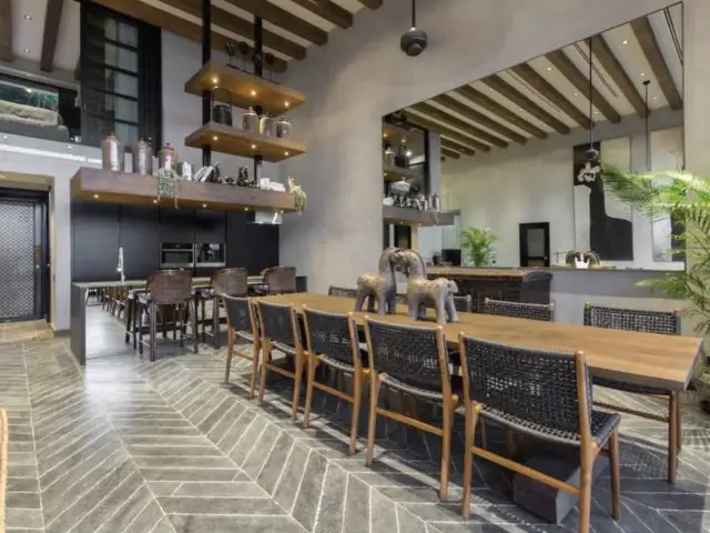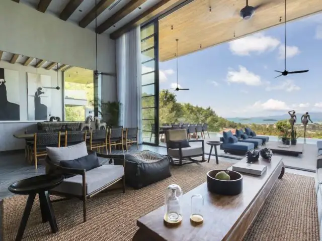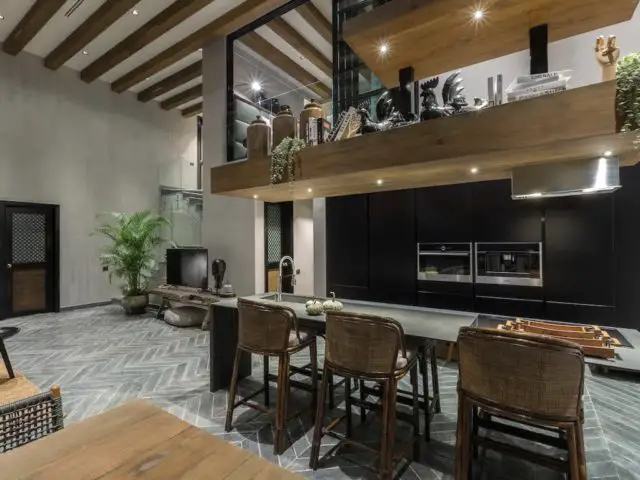 Avec plus de 500m2 de surface habitable, vous serez dans un environnement unique et design. Travaillée de manière à ce que l'intérieur et l'extérieur ne fasse qu'un, cette villa est exceptionnelle. Elle est sobre, minimaliste. La luminosité naturelle et les jeux de transparences sont fabuleux et remplacent la décoration classique. Les cloisons intérieures et extérieures sont pour la plupart vitrées. Impossible de se sentir claustrophobe ici. Chaque pièce offre une ambiance chaleureuse notamment grâce au bois qui est omniprésent. J'ai un coup de coeur pour la cuisine ouverte qui est simple mais fonctionnelle et surtout résolument déco avec ses meubles muraux en bois sombres, sa crédence en marbre. Beaucoup d'élégance au profit de la simplicité.