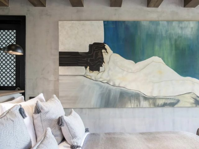 Le deuxième point fort à mes yeux est plus décoratif que structurel. Ce sont les tableaux que l'on trouve un peu partout dans la maison. Ce sont des tableaux très grands qui habillent les murs. Des silhouettes souvent féminines avec un traits relativement minimaliste. C'est un parti-pris déco qui sort de l'ordinaire et qui rend cette villa encore plus exceptionnelle.