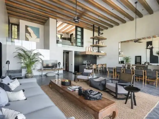 La première chose que j'affectionne beaucoup c'est la pièce de vie. Elle est vaste, ouverte, avec une très grande hauteur sous plafond. C'est un espace ouvert à l'intérieur comme à l'extérieur avec une baie vitrée hors norme qui donne sur la piscine. C'est à mes yeux le logement parfait pour partir en vacances entre amis (même en famille).