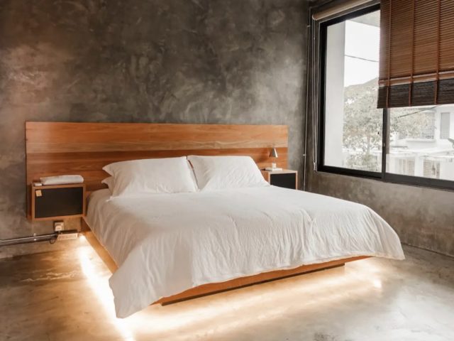Les chambres à coucher contrastent avec les espaces de vie. Elles sont plus sobres, plus minimales que le salon séjour voire la cuisine. Sobres mais pas moins déco. Ici aussi on retrouve les caractéristiques du style masculin: des matériaux nobles comme le bois, un certain niveau de minimalisme, des couleurs intenses et chic.