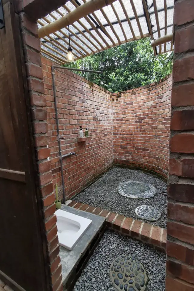 C'est parfait quand on cherche un établissement pour une retraite spirituelle, faire du yoga, etc. (Et c'est tout ce qui va avec ça qui n'est pas du tout notre délire...) J'aime beaucoup l'idée de vivre essentiellement dehors sur la grande terrasse couverte. On profite de la nature environnante sans pour autant souffrir des rayons du soleil ou de la pluie (la Malaisie est un pays où il peut pleuvoir régulièrement mais pas forcément des jours entiers). J'aime aussi beaucoup l'ambiance wabi sabi des lieux. Cela convient bien à l'introspection et à l'ancrage dans le réel. C'est une ambiance assez épurée même dans les chambres qui invite à se concentrer sur ce qui est essentiel. Tout ça, ça me parle bien. Je suis aussi fan des salles de bain extérieures qui permettent de profiter de la nature et se détendre sous la douche.