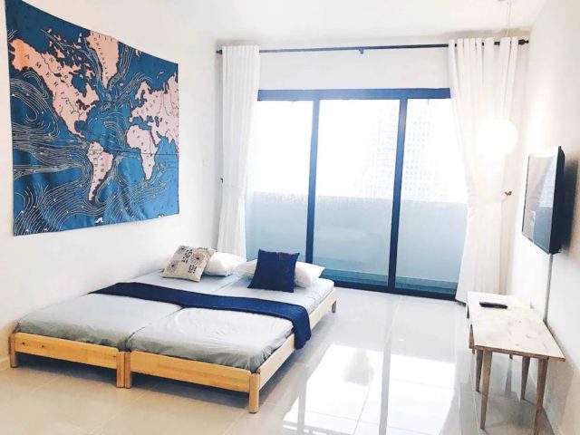 Pour ce dernier hébergement, on est sur un établissement urbain qui propose un appartement avec piscine partagée en rooftop. J'aime beaucoup la simplicité déco de l'appartement. Il y a juste ce qu'il faut de décoration pour le rendre accueillant et moderne. Il peut être pratique quand on voyage en famille avec des enfants puisque le salon se convertit en espace sommeil.