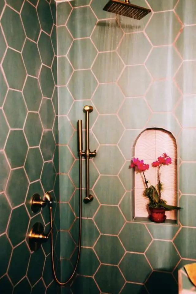 - La couleur vous permettra aussi d'insister sur le côté géométrique du carrelage. Ces dernières années, on a vu le carrelage prendre des formes nouvelles comme le carrelage écaille, le carrelage hexagonale. La couleur des joints est une bonne manière de souligner cette forme qui sort de l'ordinaire.