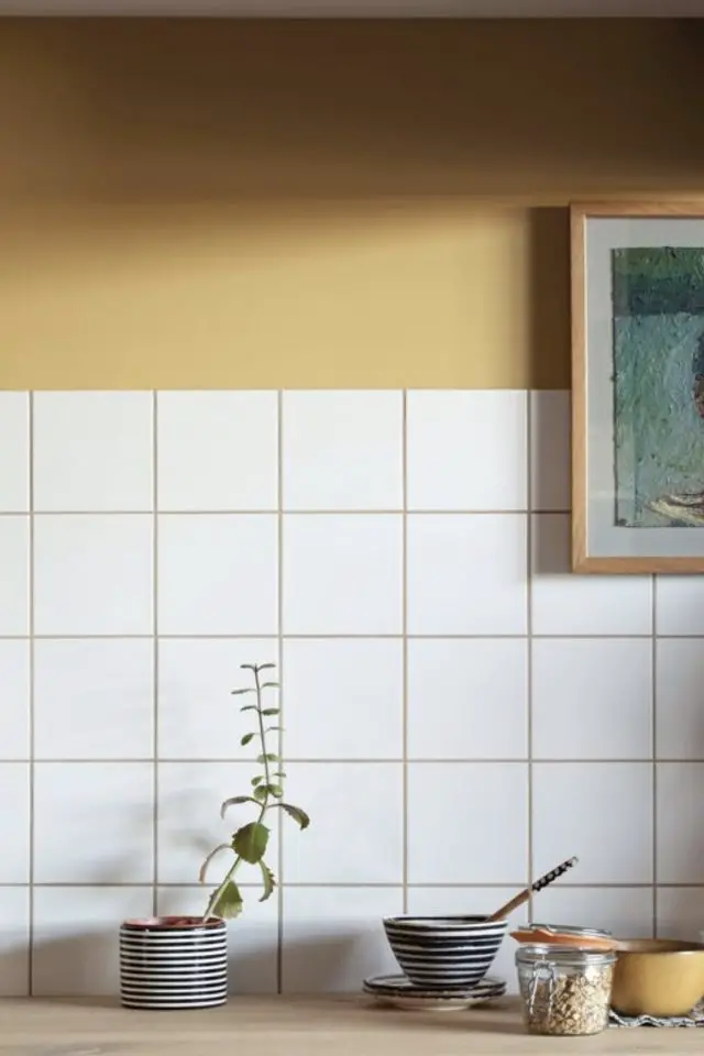- Créer une touche plus déco dans la cuisine en apportant une pointe de couleur sur la crédence murale.