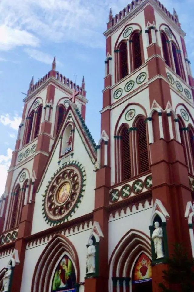 Les églises de Pondicherry. Il y en a plusieurs. Elles ont toutes un charme particulier. Les trois plus connues sont: Notre Dame des Anges, la Basilique Sacré Coeur, la Cathédrale de l'Immaculée Conception. Il y a une forte communauté chrétienne à Pondy et il y a des couvents. Vous verrez donc éventuellement des nones se déplacer en ville. A Notre Dame de Anges (près de la digue), il y a des messes en français normalement.