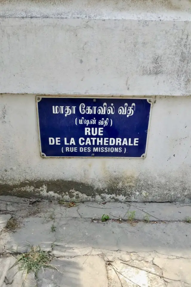 Le quartier Français fait la renommée de la ville. Les gens y passent pour le voir. Sur la carte, j'ai délimité ce quartier en couleur. Ce n'est pas un grand quartier et c'est sympa de s'y promener. Il y a peu de circulation, peu de personnes, c'est bien pour faire un break dans le brouhaha indien. Vous y verrez une architecture différente, un héritage colonialiste à la française. Le nom des rues est en français (les mêmes plaques bleues qu'en France). Certains bâtiments sont encore nommés en français. Il y a des restaurants (pas forcément donnés) et quelques bars (plus classes qu'un bar classique indien).