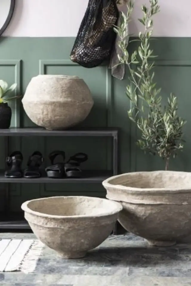 - Des cache-pots pour dissimuler le pot en plastique moche de vos plantes. Cependant, j'aime l'idée que le cache-pot en papier mâché a tendance à s'effacer au profit de la plante verte qui se trouve à l'intérieur.
