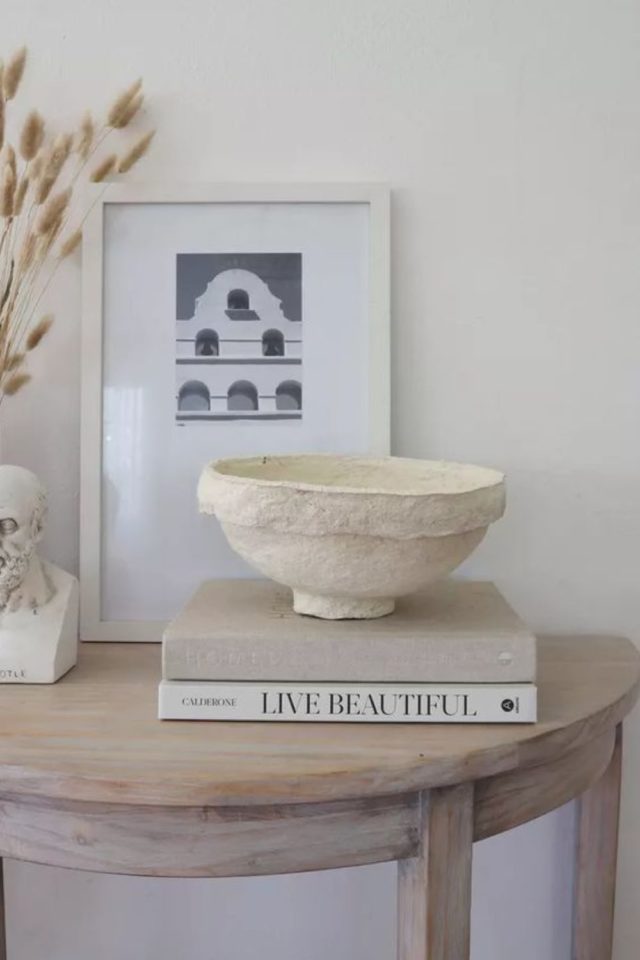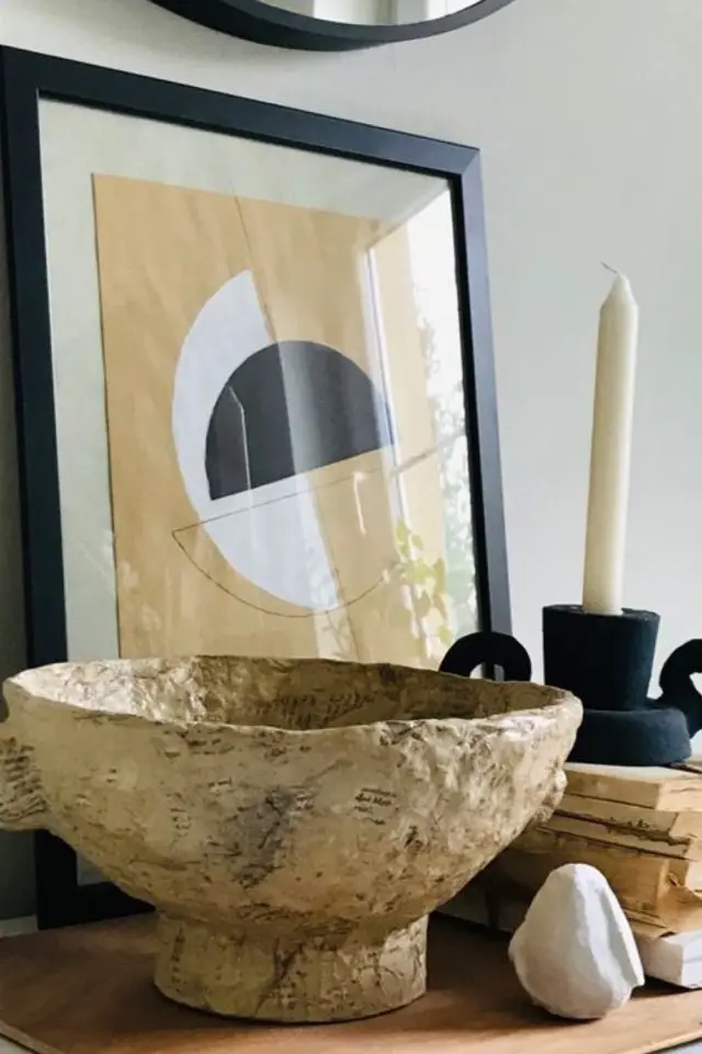 Le papier mâché s'invite dans plusieurs styles. On le retrouve aussi bien dans un décor slow living où on s'entoure de moins d'objets mais ils sont choisis avec soin. On peut aussi l'intégrer dans un décor bohème chic. Le papier mâché dégage une idée d'authenticité qui va bien avec l'ambiance bohème. Et on peut aussi l'intégrer dans un décor bold, tout en rondeur. C'est un matériau facile à travailler et qui offre des objets tout en courbes.