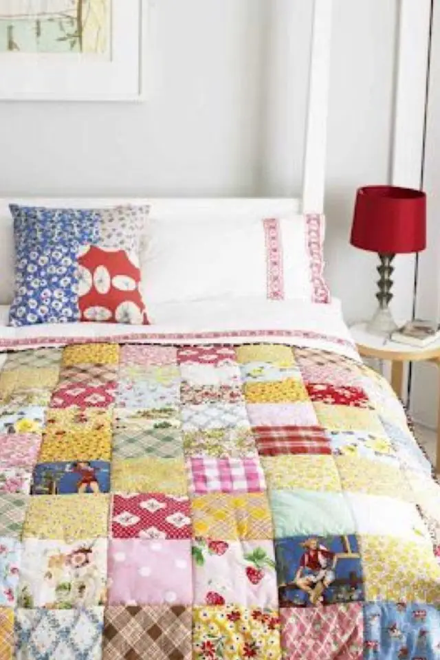 Avant de passer au thème suivant, j'aimerai revenir sur l'idée de patchwork qui, en plus de donner un intérêt aux chutes de tissus, colle parfaitement avec le style Granny Chic: une atmosphère vintage, un peu kitsch (encore), une bonne dose de douceur qui peut rappeler notre enfance & l'intérieur de nos grands-parents. Le plaid ou le couvre-lit en patchwork - sous leur apparence désuète - sont des accessoires parfaits pour vous aider à créer ce type d'ambiance.