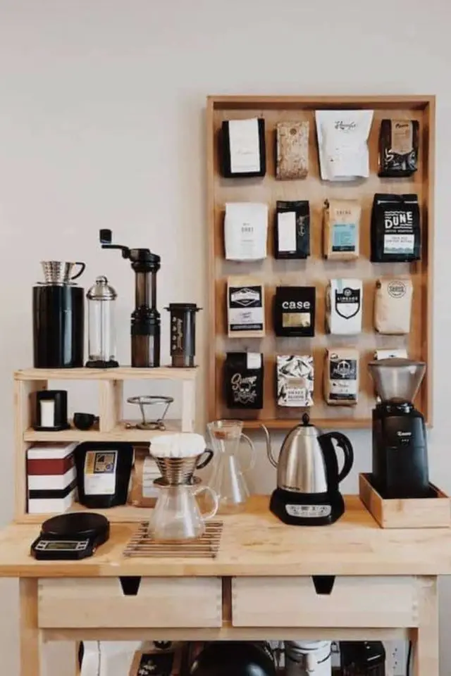 Tout le monde n'aspire pas à ouvrir un petit café mignon dans son quartier. Néanmoins, on peut inviter cette idée à la maison notamment en prenant le temps de préparer un bon café et donc en créant un espace dédié dans la cuisine avec une desserte, quelques rangements muraux, de jolies tasses... On peut aussi se créer un petit coin agréable où siroter un bon café. Un coin idéal pour faire une pause, se ressourcer, observer l'extérieur voire méditer quelques instants.