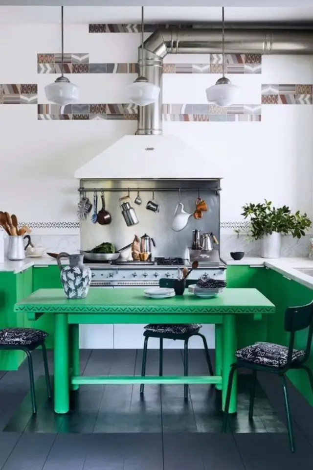 Est-ce que cette tendance des kitsch(enettes) via Pinterest signe la fin des cuisines minimalistes? Je ne pense pas. Le minimalisme dans cette pièce de vie était intéressant pour la fonctionnalité de l'espace. Une cuisine pratique n'est pas antinomique avec une cuisine éclectique ou vintage. Ici, on ajoute juste un côté plus fun & amusant à la pièce grâce aux couleurs, à quelques éléments décoratifs, au vintage.