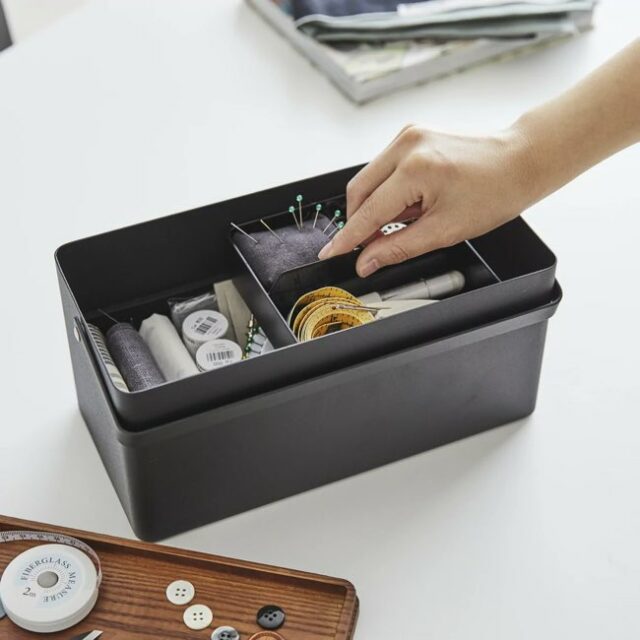 - Boîte à couture en acier et bois noire - The Cool Republic