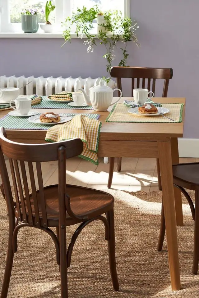 Dans la salle à manger, le début de l'année est le moment adéquat pour choisir une table plus grande ou du moins évolutive pour recevoir amis et famille confortablement dans les mois à venir. Vous avez peut-être remarqué que pendant les fêtes, votre salle à manger ne convenait plus à vos besoins... Toujours dans la catégorie mobilier, profitez des réductions pour acheter un grand buffet afin d'avoir enfin suffisamment d'espace de rangement. La période des soldes est aussi parfaite pour revoir la déco de table et choisir nappe, vaisselle et couverts plus à votre image.