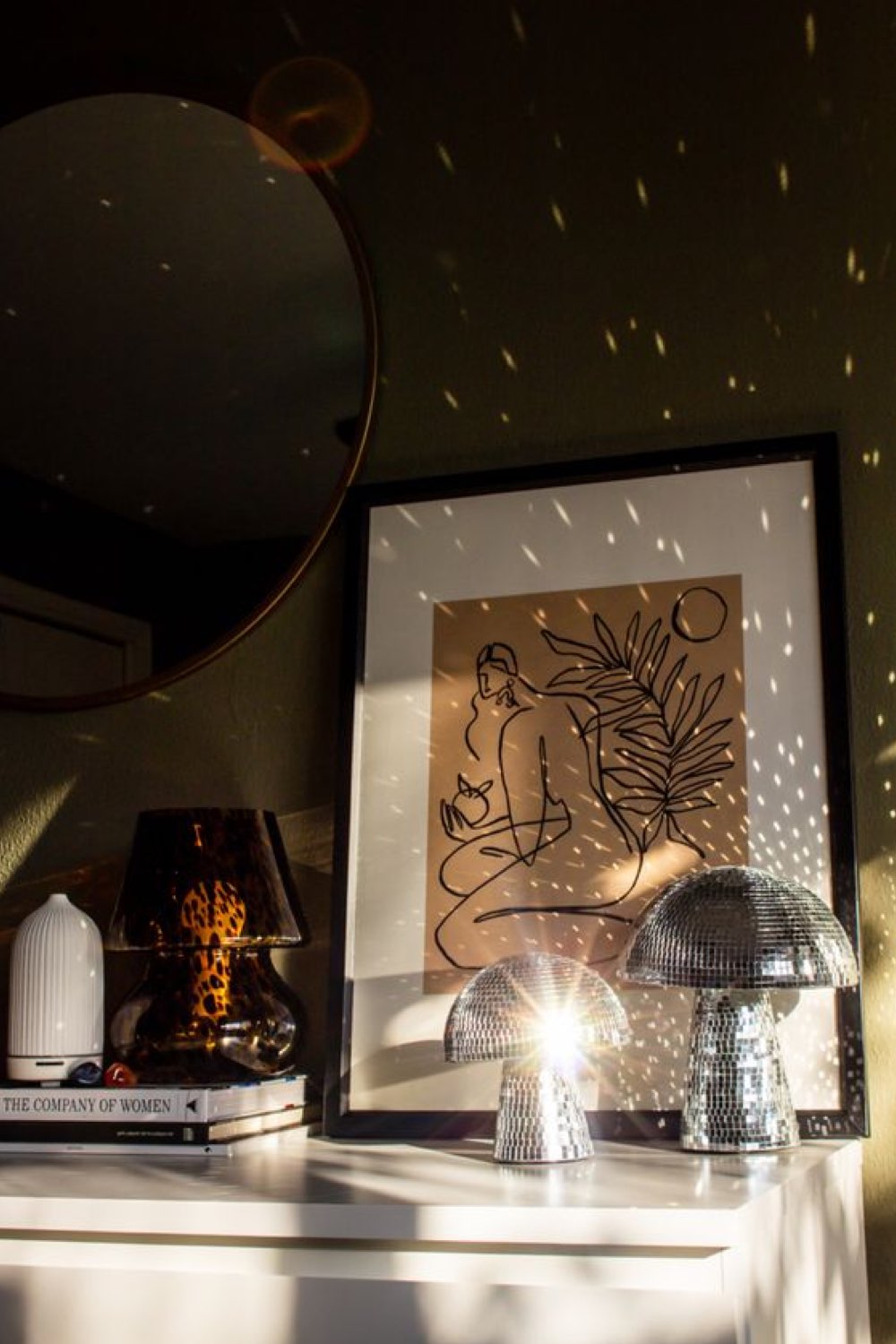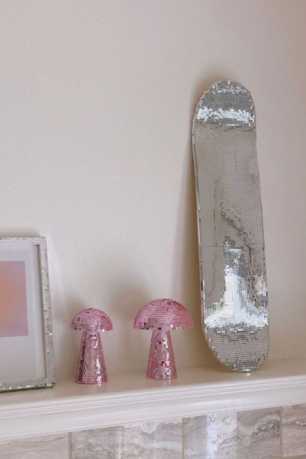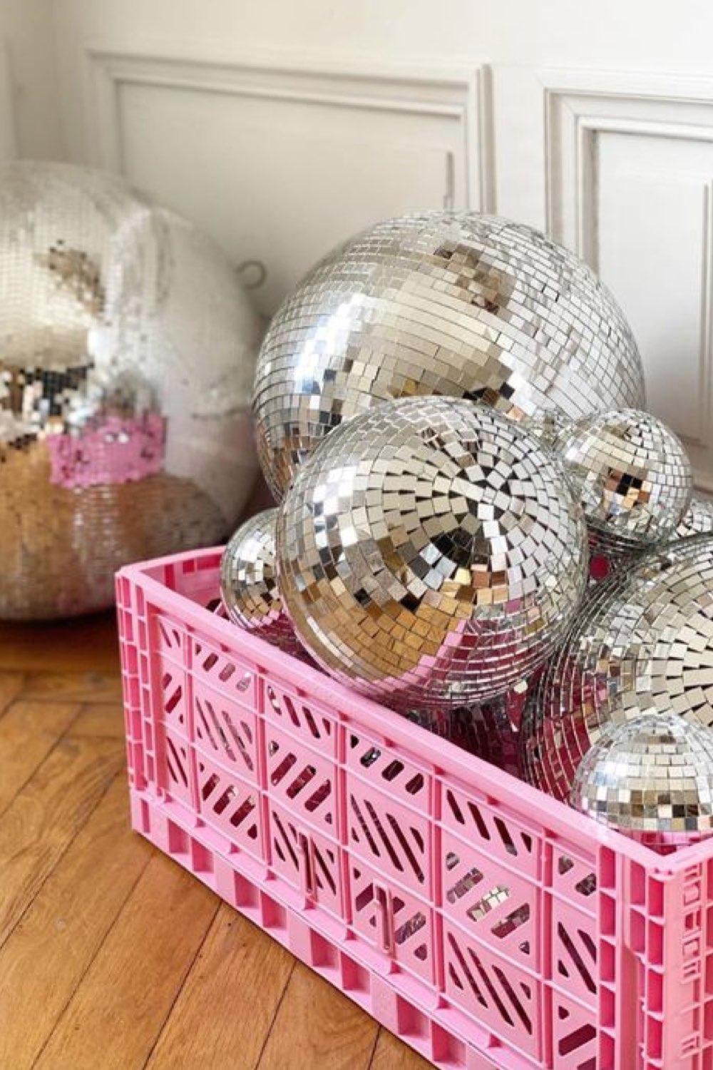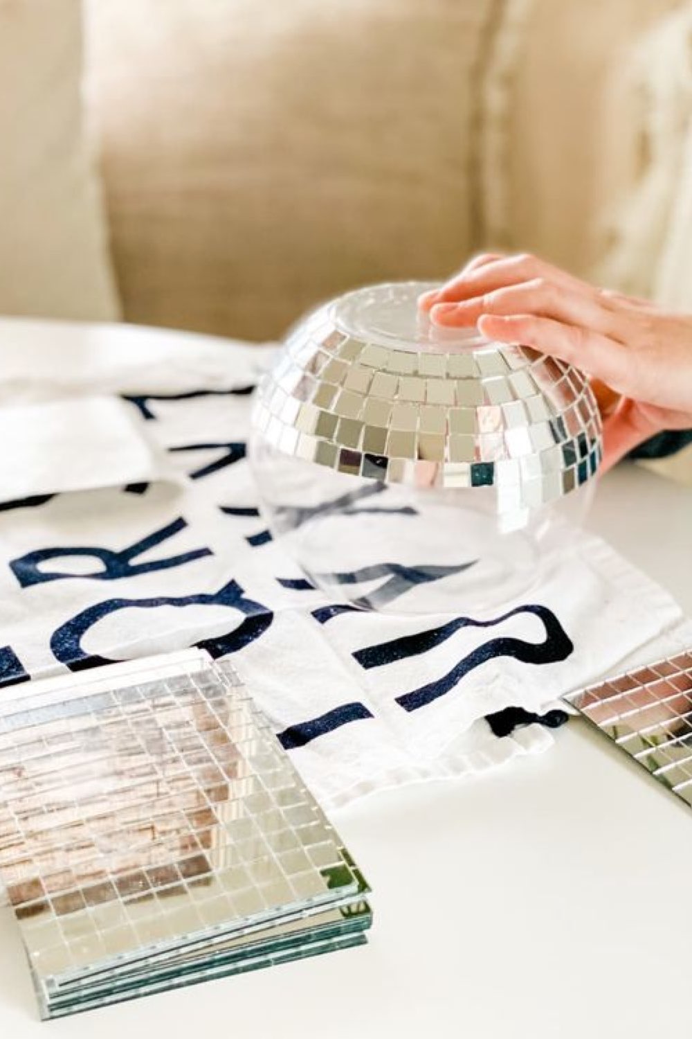 Il est difficile de passer à côté ces derniers mois, la boule à facettes - symbole des années disco - s'invite dans nos intérieurs pour apporter de l'éclat mais aussi une touche de fun. C'est un accessoire qui donne une tonalité plus festive et plus amusante à notre quotidien.La boule disco n'est pas un simple objet déco, elle crée des éclats lumineux qui donnent une autre tournure à une pièce. La décoration devient vivante et plus ludique. On peut très bien ajouter une boule à facettes chez soi mais on peut aussi être créatif•ve et s'inspirer de la mosaïque de miroir pour personnaliser différents objets. C'est ce qui nous intéresse aujourd'hui dans cet article.