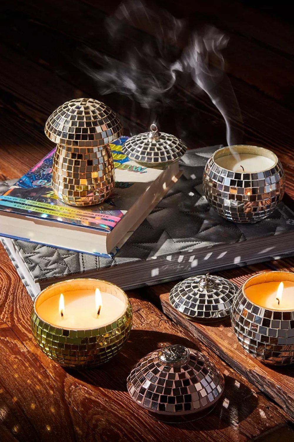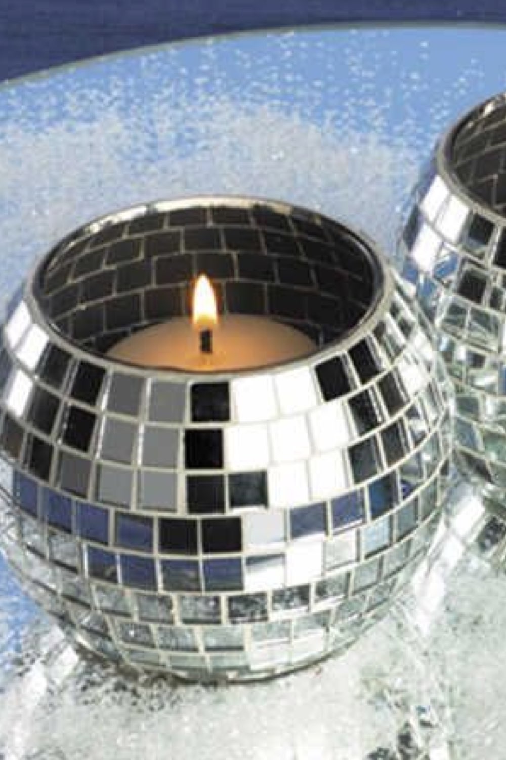 Plus discret que le pot de fleurs, il y a le photophore qui peut être transformé et revêtir une allure plus funky et plus années 70 grâce à de petits miroirs. Pour un effet boule à facettes, il est préférable de choisir un modèle de photophore arrondi. Néanmoins, ce n'est pas une obligation!