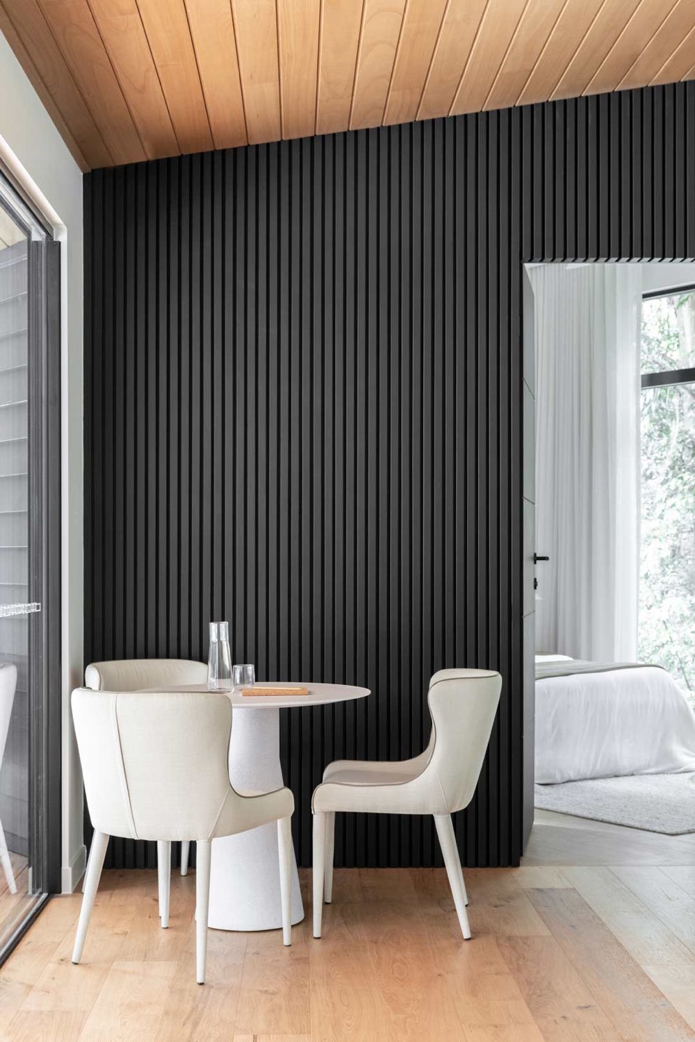 Il me faudrait plus d'une vie de dur labeur pour pouvoir imaginer m'offrir ce lodge construit pendant la pandémie. Cependant, ça ne coûte rien de rêver et de s'inspirer! Si vous suivez le blog, vous savez que j'aime l'architecture moderniste du milieu du siècle passé et que j'aime encore plus le minimalisme. Cette visite déco ne va donc pas vous étonner! Je suis sous le charme d'à peu près tout dans cette demeure australienne: sa localisation au coeur de la nature, les volumes, les matériaux... J'espère qu'elle vous plaira tout autant.