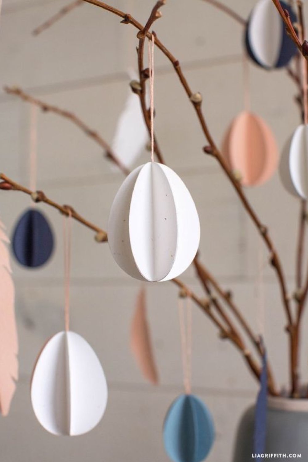 Etape 4: collez chaque moitié entre elles sans oublier d'ajouter au centre une ficelle pliée en deux pour pouvoir suspendre vos oeufs en 3D.