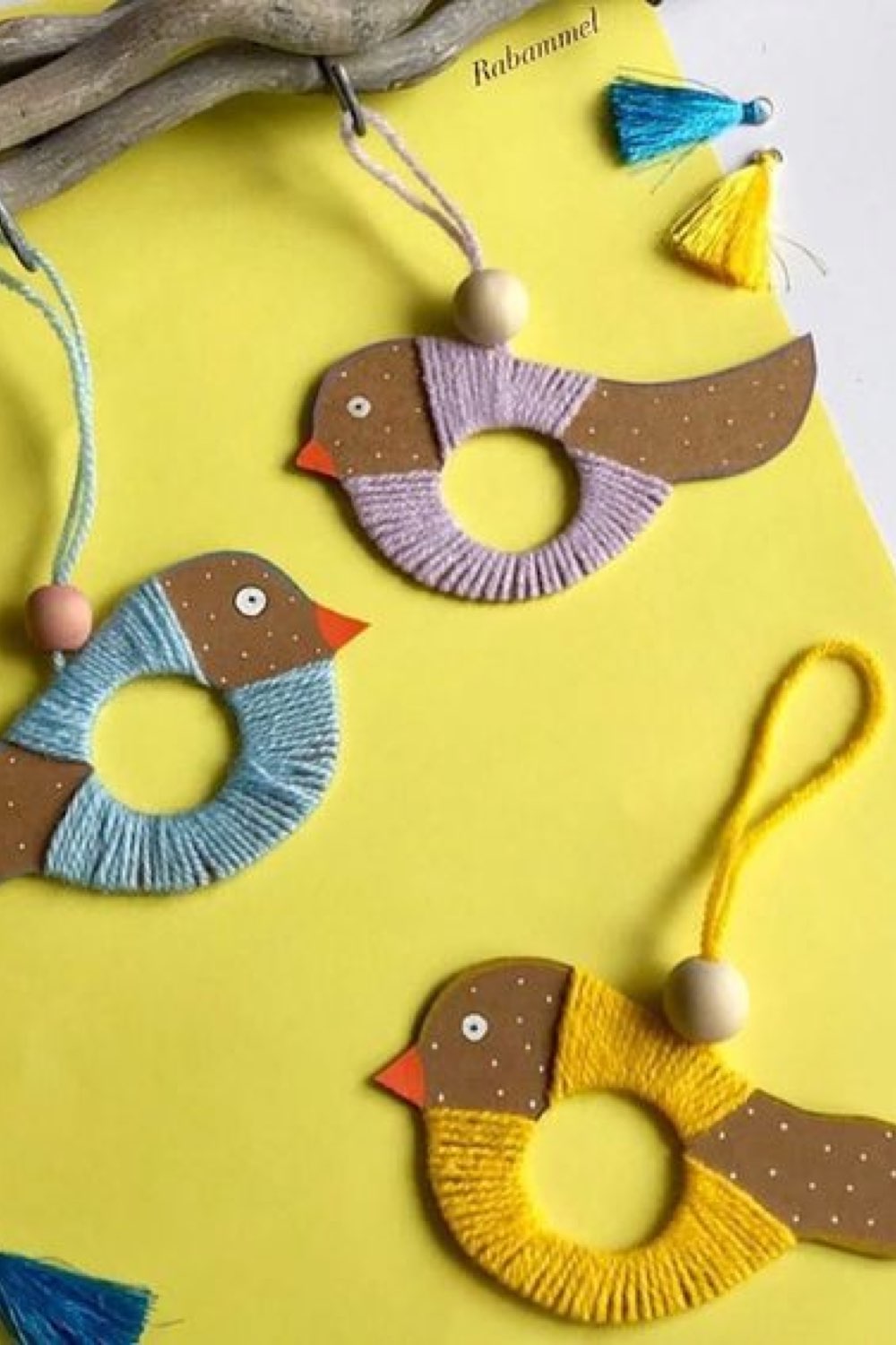 Etape 4: n'oubliez pas de laisser un peu plus de ficelle / laine pour pouvoir suspendre votre oiseaux. Ajoutez une perle de bois.
