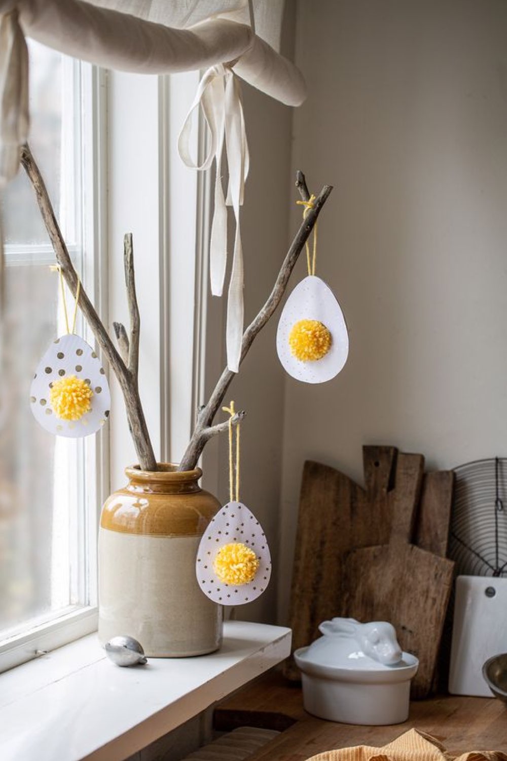 16 • Pompons et papier pour créer des oeufs de Pâques à suspendre