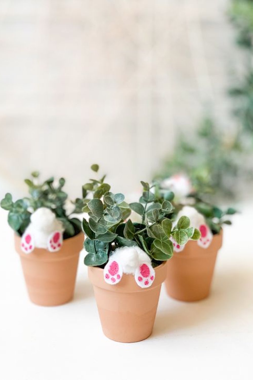 19 • Décorer des pots de fleurs avec des petits lapins qui se cachent
