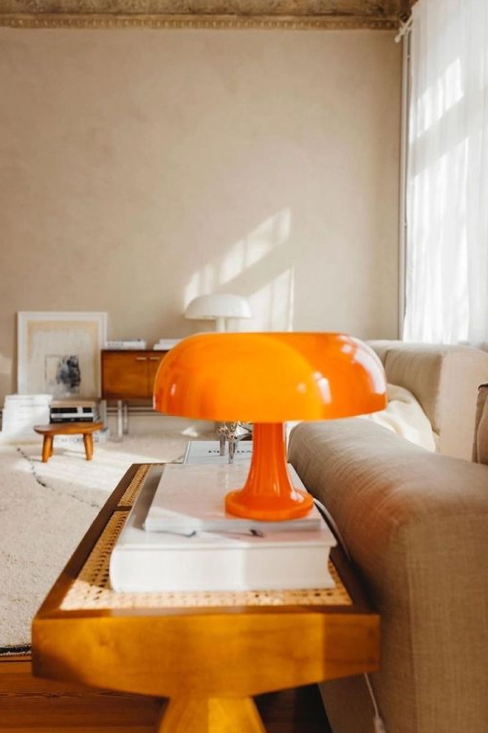 Le orange franc fait un clin d'oeil aux années 70 (notamment par le biais de lampe rééditée). Parfait pour un clin d'oeil vintage. Cependant, le orange en ce moment n'est pas juste sous sa nuance franche. On le trouve aussi sous des nuances terracotta (très cosy), des nuances corail et pêche (pour inviter les vacances chez soi toutes l'année), des nuances plus sourdes qui tirent un peu vers le marron (pour un intérieur élégant et chaleureux).