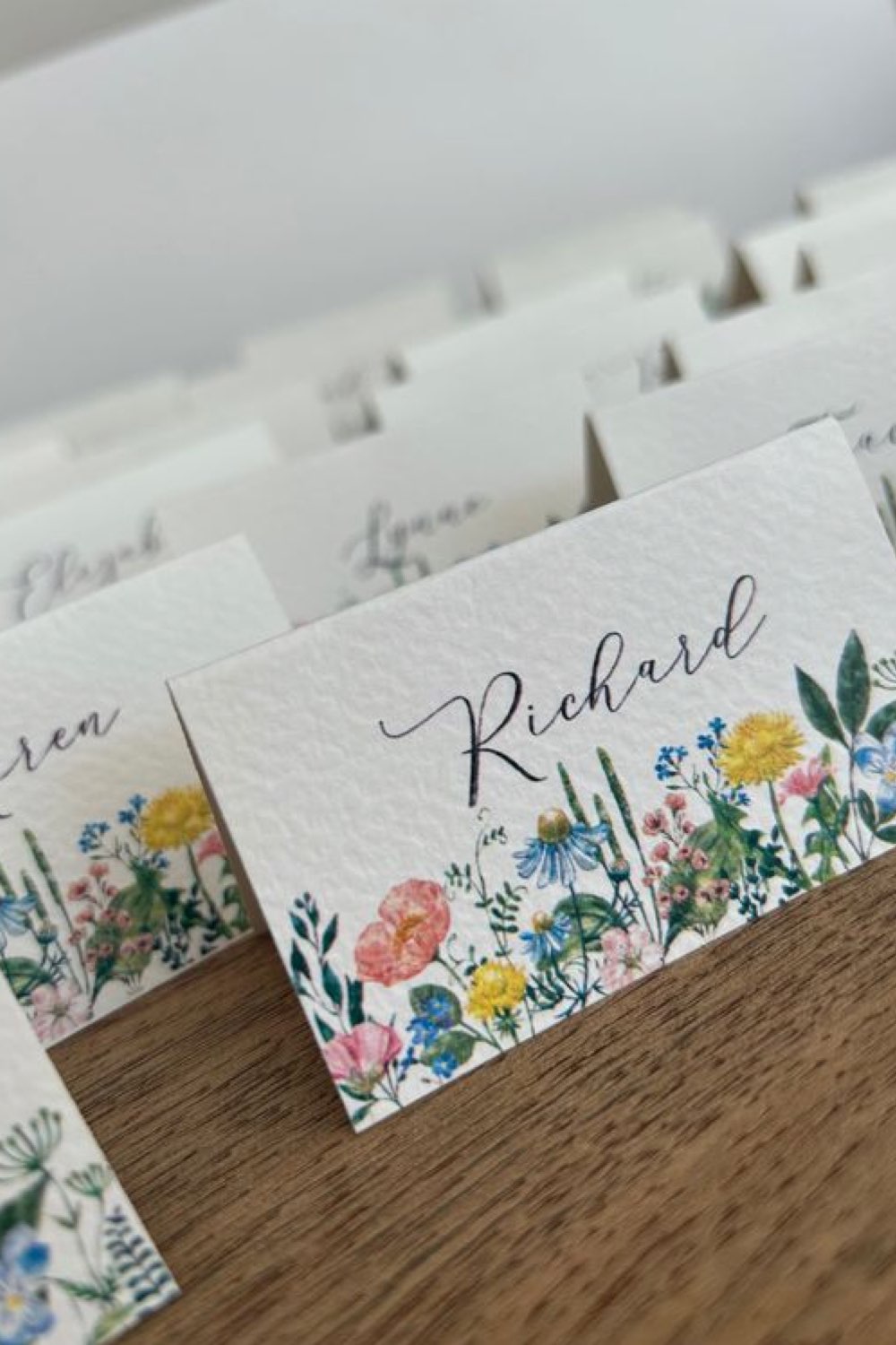 02• Des marque-places décorés avec de petites fleurs printanières