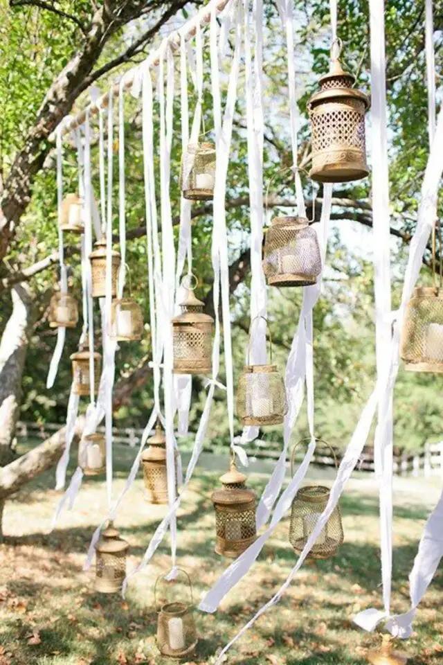 05 • Un décor extérieur composé de rubans blancs et de lanternes