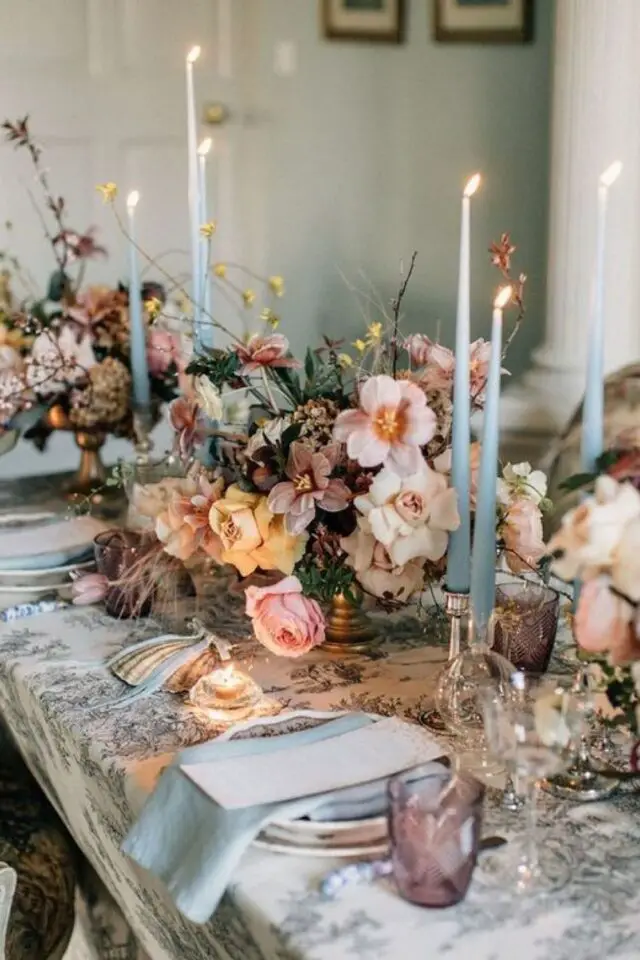 10 • Créer un centre de table avec des bougies de couleurs assorties aux fleurs