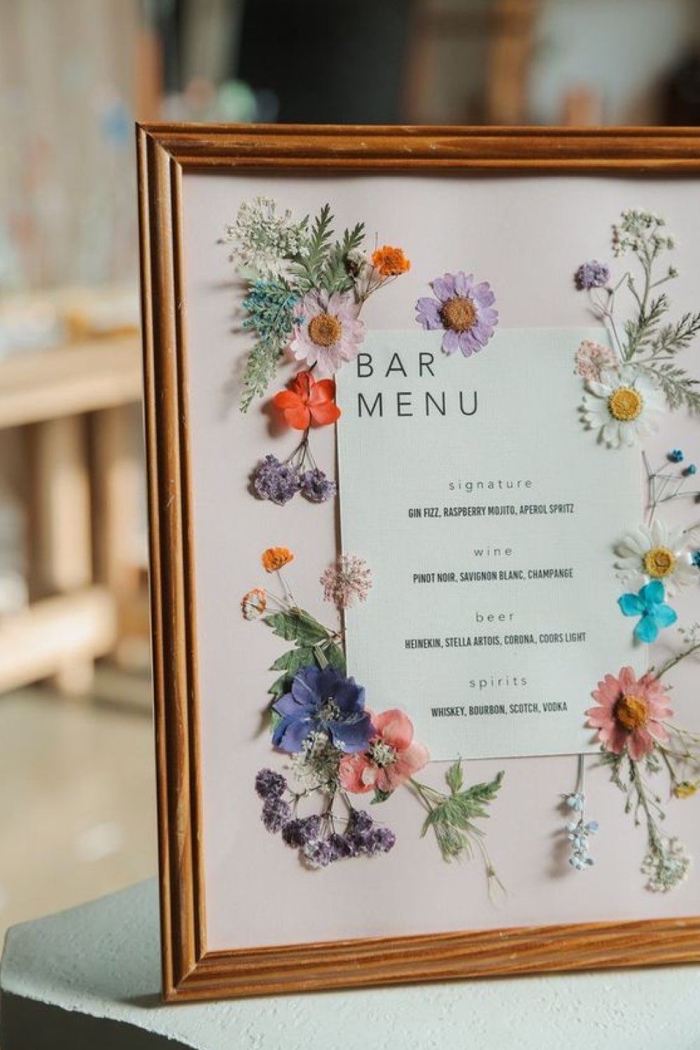 29 • Des fleurs séchées encadrées pour décorer le menu