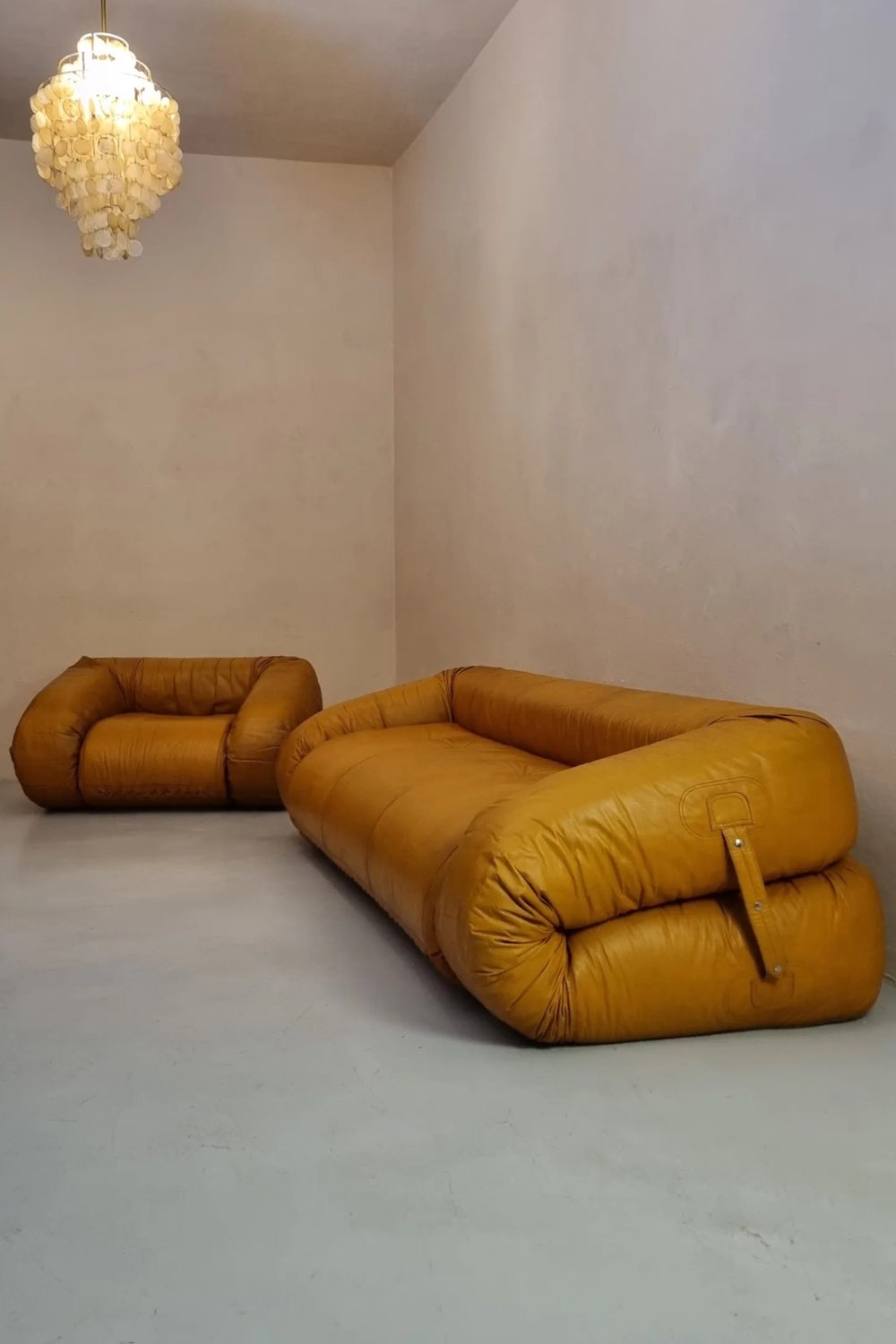 Initialement, ce canapé design n'a été produit qu'en 50 exemplaires, cependant, en 2022 Cassina a décidé de ré-éditer le modèle. Inspiré du Pop Art, cet ensemble représente la ville de New York. Un hommage mais pas que puisque le designer voulait aussi apporter / inciter une réflexion lucide sur la ville. Le tissu tramé est exclusif et représente les vitres des gratte-ciels, le dossier est un soleil couchant en satin rouge vif. La forme générale du canapé schématise l'architecture urbaine.