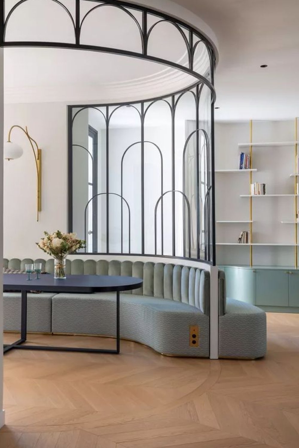 Un peu moins facile à mettre en oeuvre, la question du verre notamment par le biais des fenêtres et des vitraux. Ce sont deux choses intéressantes à regarder notamment si vous prévoyez des travaux de rénovation. Les fenêtres Art Déco peuvent être sous la forme de fenêtre hublot ou encore de bow-window. On retrouve l'idée de géométrie propre au style.