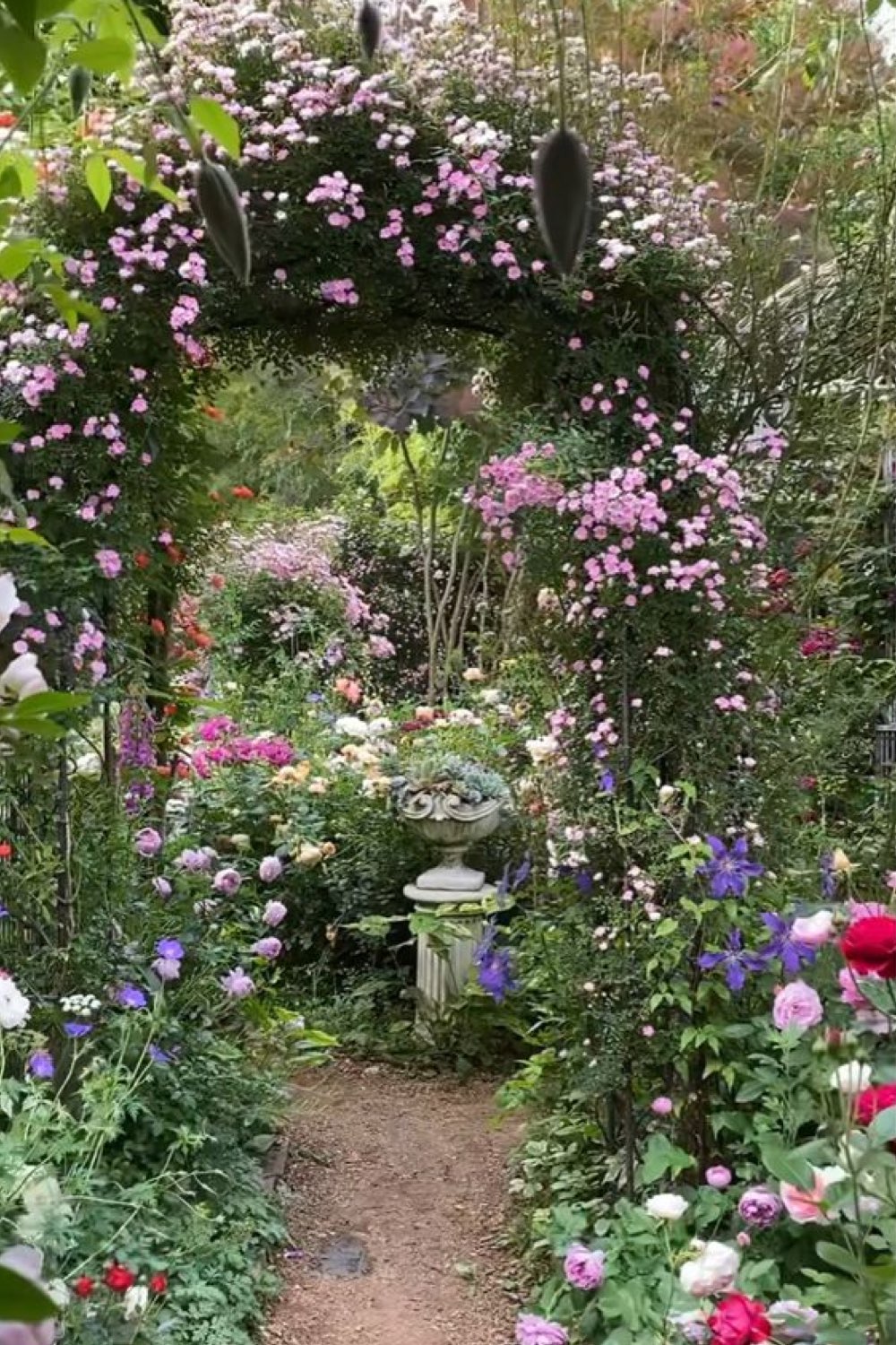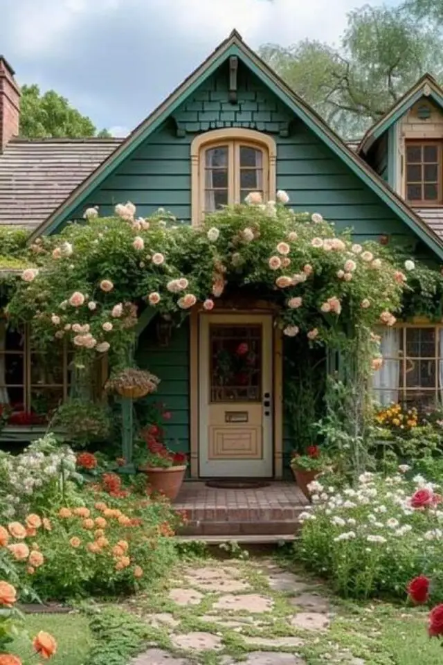 25 • Une arche fleurie de rosiers devant l'entrée de la maison
