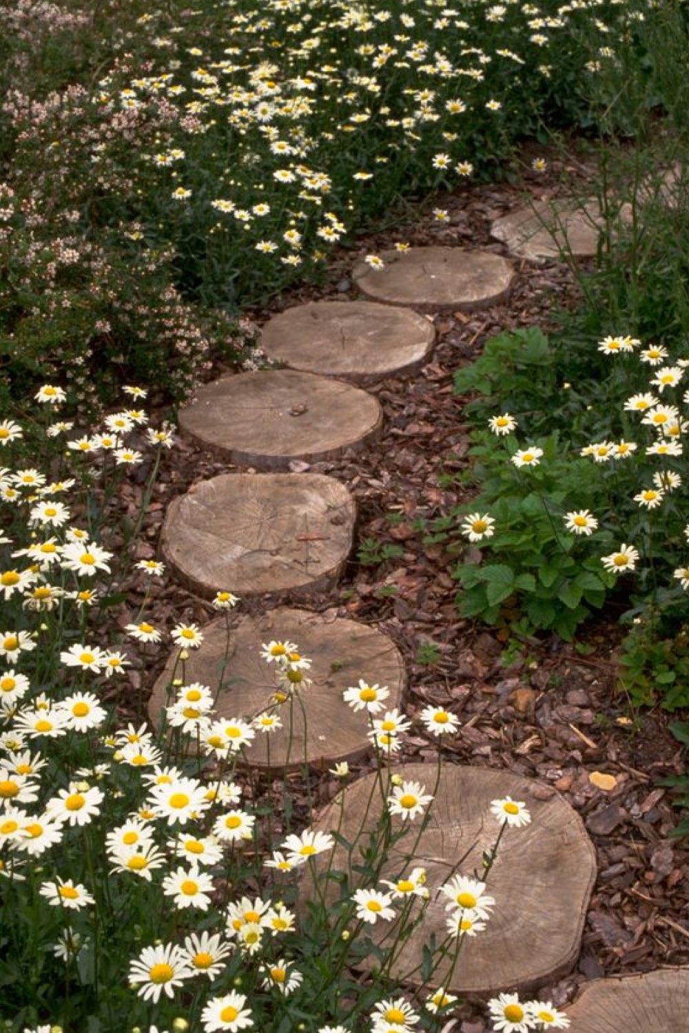 20 • Une allée faite maison avec des rondins de bois et de l'écorce