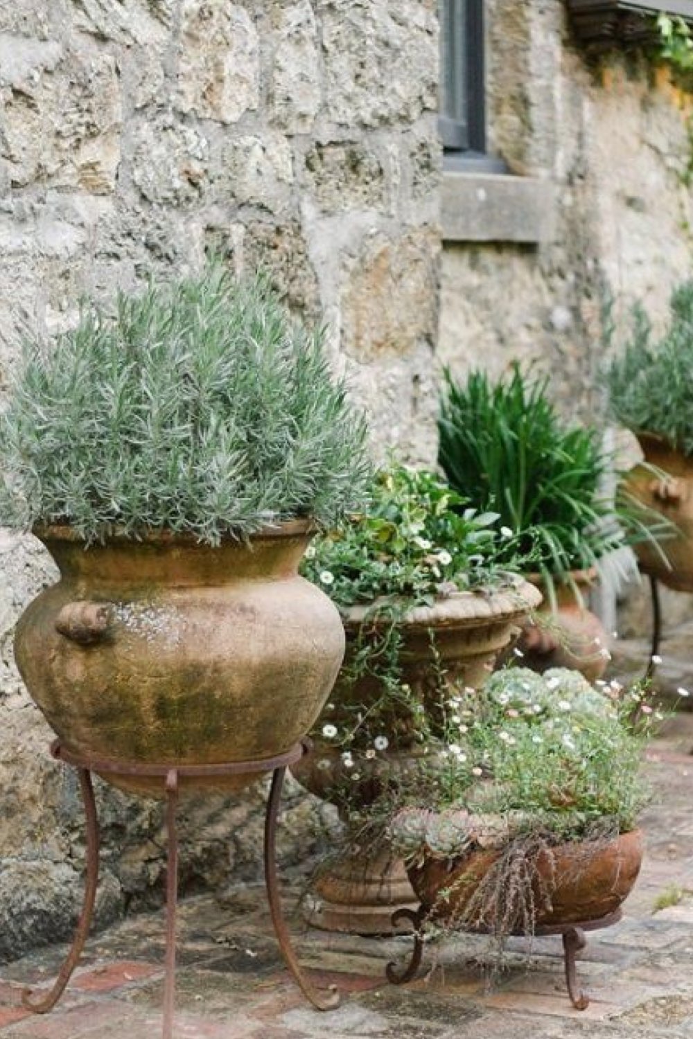 09 • Des pieds en métal anciens pour donner de la hauteur à des pots en terre cuite