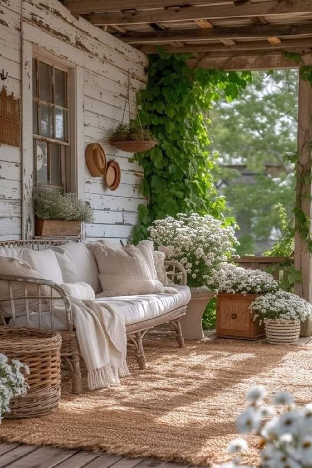 24 • Blanc cérusé et écru pour un porche rustique et cosy