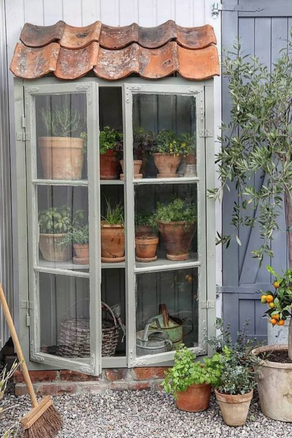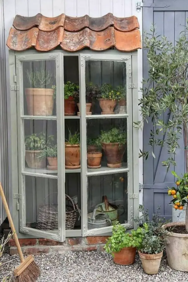 J'ai toujours beaucoup aimé les serres, je ne me l'explique pas trop. J'aime cet élément que l'on trouve aussi bien en intérieur qu'en extérieur. Et je suis sous le charme de celle que j'ai sélectionnée parce qu'elle est simple (et efficace) et parce qu'elle peinte en vert sauge. J'aime cette couleur que ce soit dans le jardin ou dans la maison. Le vert sauge est une couleur naturelle et elle est synonyme de douceur. Les jardins rustiques sont très doux et donc ça colle, nickel!