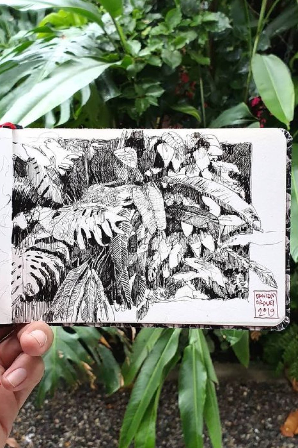 La nature est pour moi une source de méditation. Je passe beaucoup de temps à l'observer. Elle est aussi source d'inspirations. Je crois que dans tous mes journaux de voyage, il y a des dessins de plantes ou au moins de paysages. Il y en a plus dans les derniers - mais ce n'est pas parce que je m'intéresse plus à la nature, c'est juste que j'ai acheté des carnets qui me permettent de dessiner!