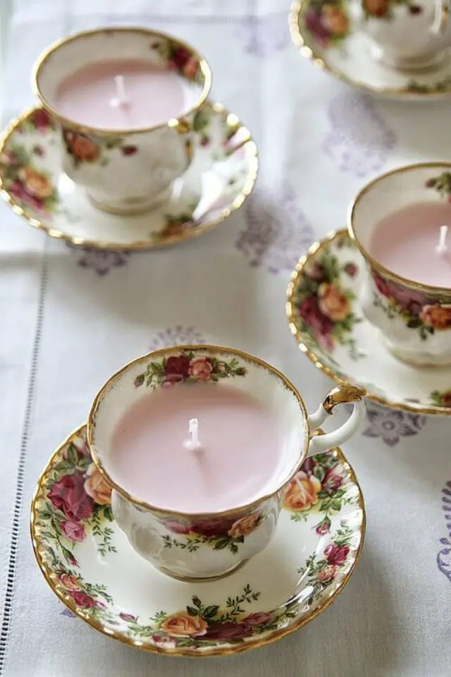 01 • Des bougies faites maison dans un ancien service à thé