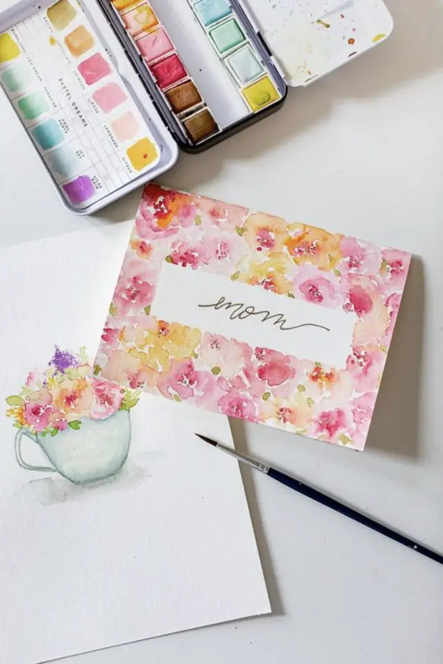 14 • Une carte en aquarelle avec un motif floral pour célébrer votre maman