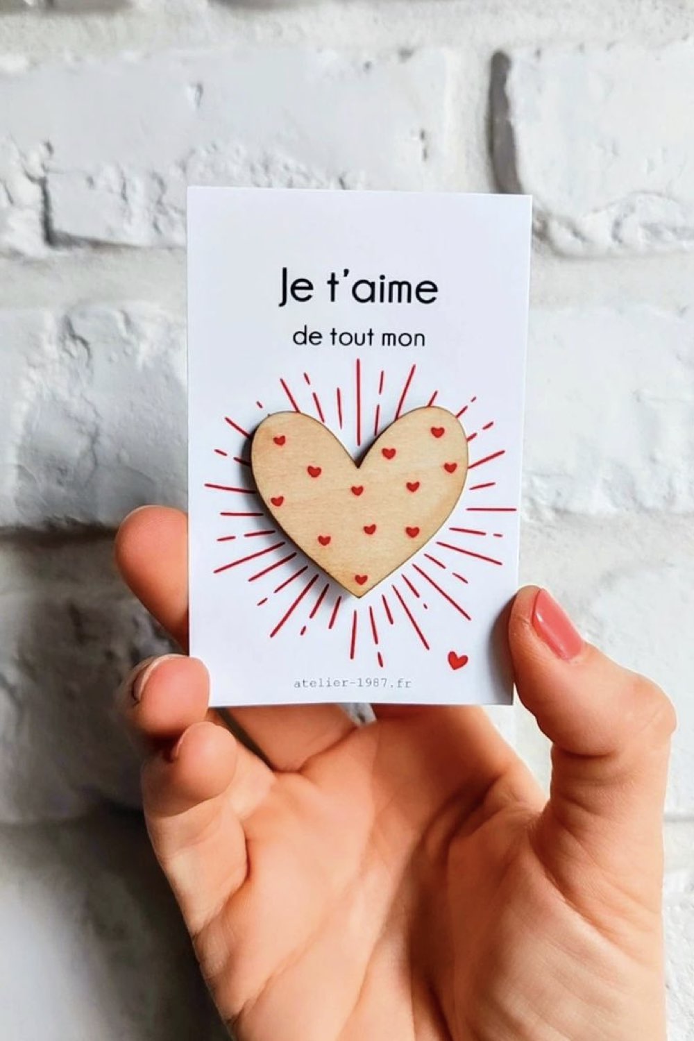 13 • Un coeur en bois customisé et collé sur une carte imprimée pour faire plaisir à votre mère
