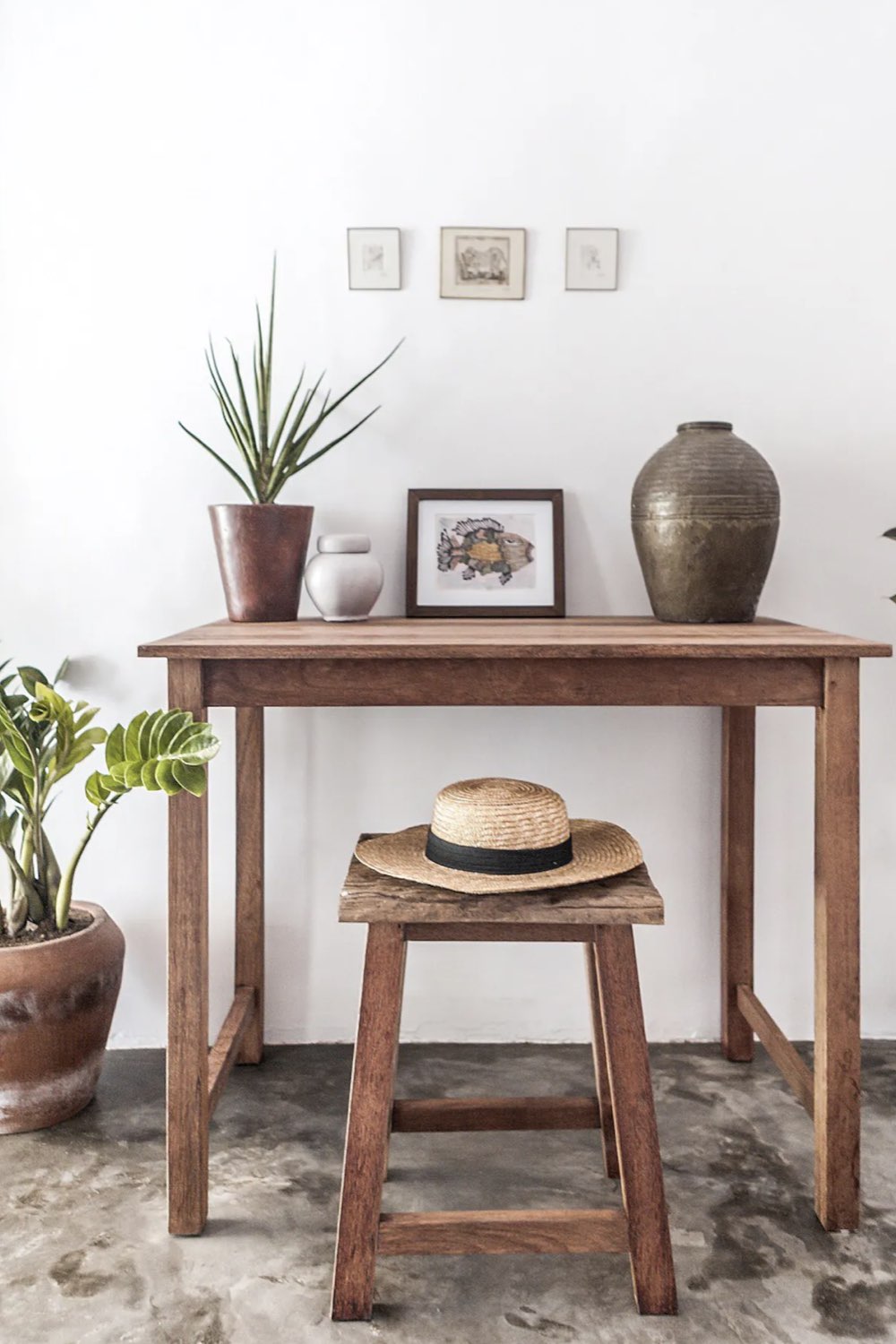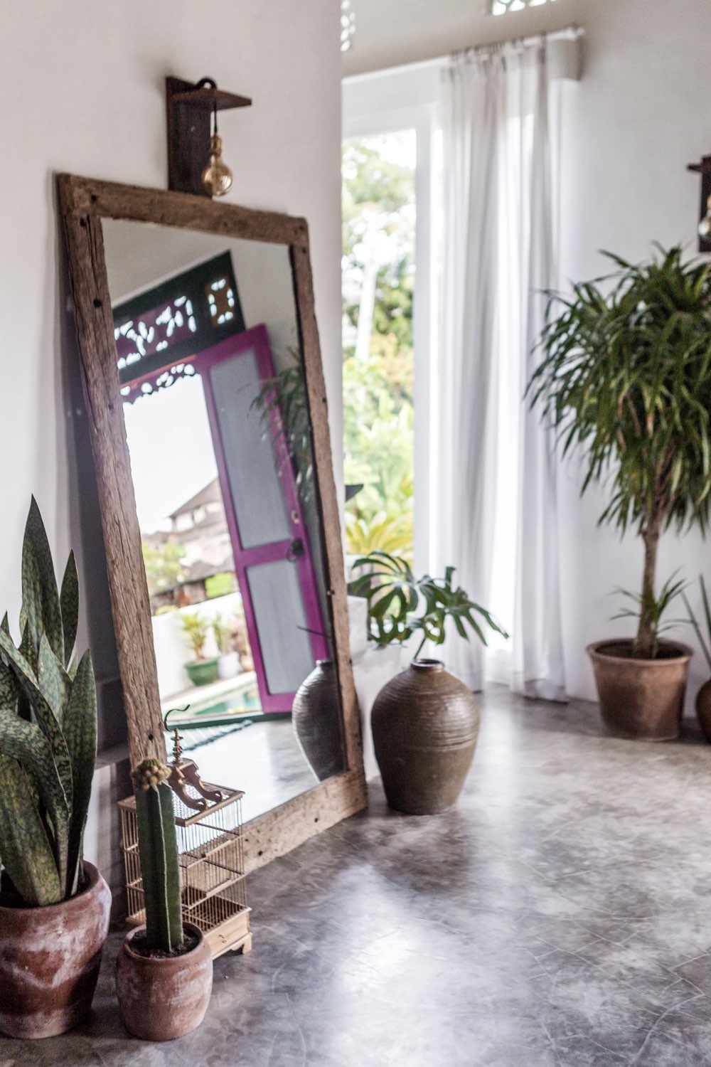 Deuxième élément qui donne un offre un côté évasion du côté du Mexique: les meubles en bois ancien. Eux aussi offrent un sentiment d'authenticité. Ils font penser à des meubles (voire de la déco avec le grand miroir posé au sol) qu'on se transmet de génération en génération.