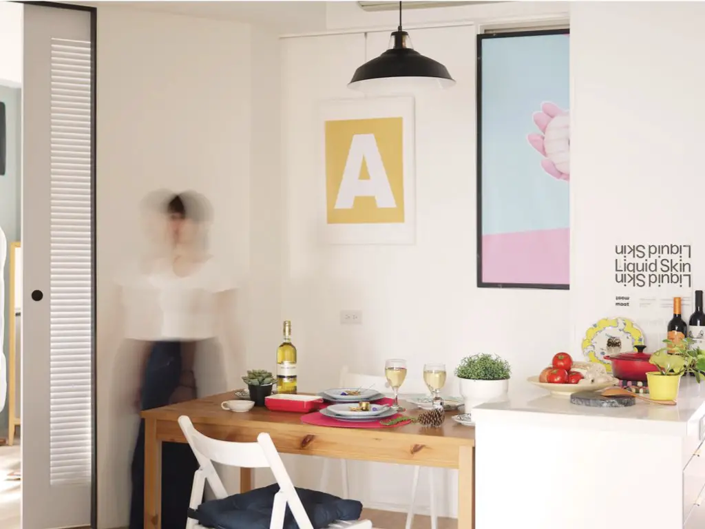 Pour certain•e•s le blanc est fade. J'ai envie de dire que ça dépend comment on utilise le blanc chez soi. Le bois dont le parlais juste avant réchauffe l'atmosphère. Pour créer un espace dynamique et énergique, des touches de couleurs ont été ajoutées au décor: