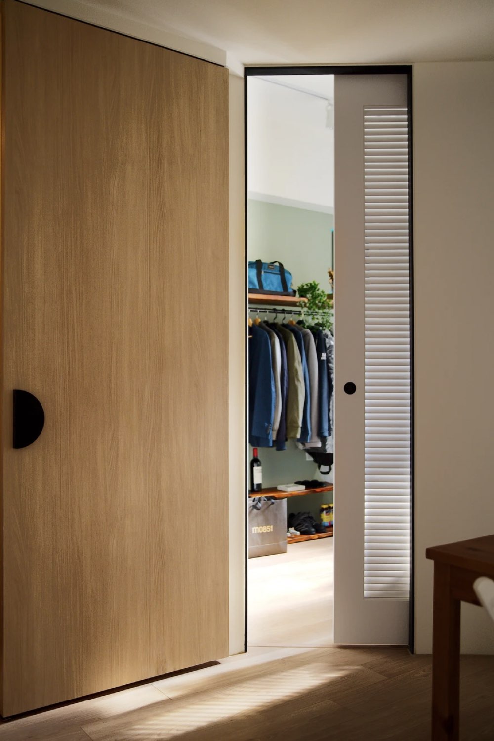 petite maison simple et moderne porte de chambre rangement dressing ajourée