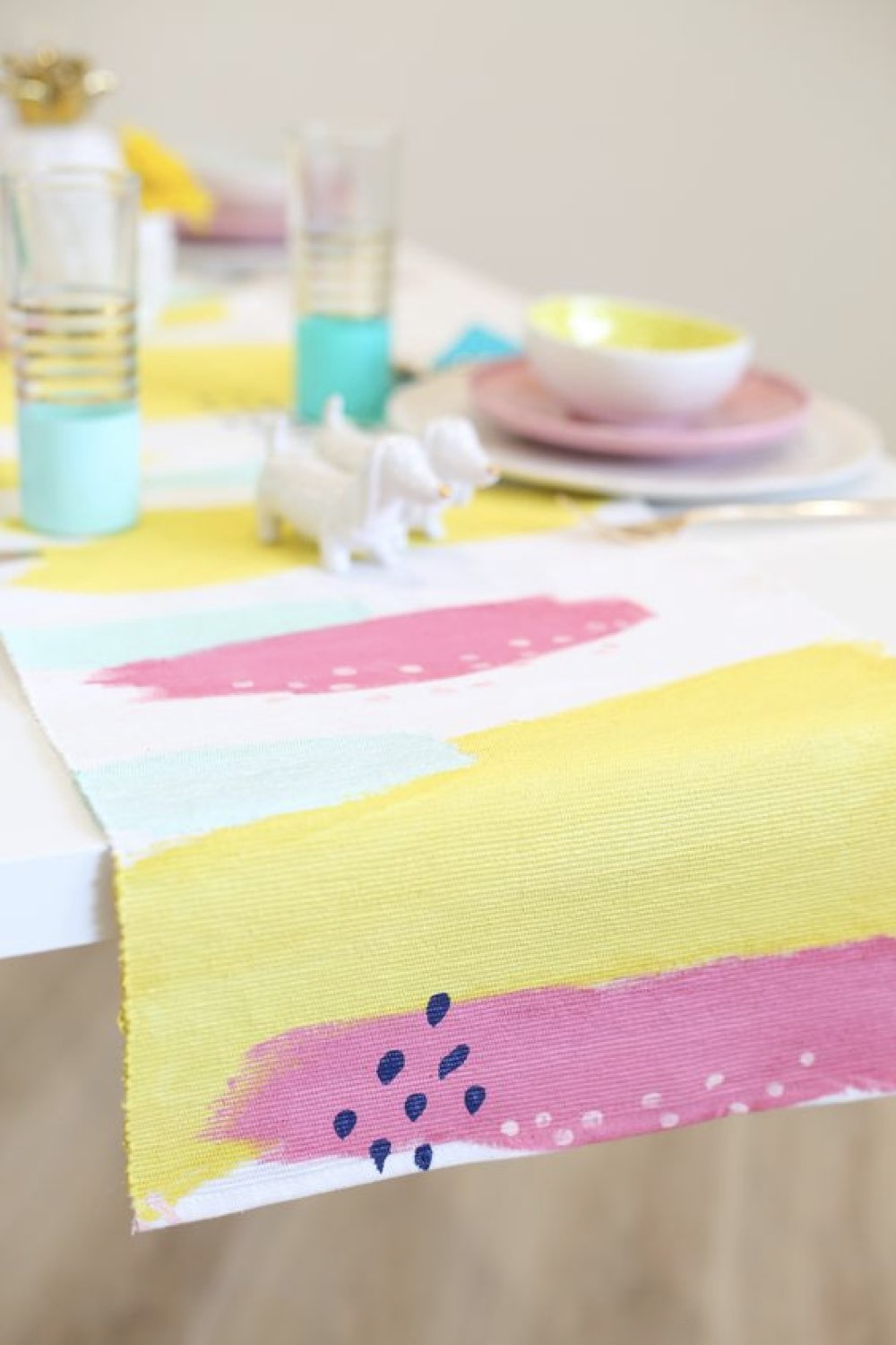 De la peinture textile pour un chemin de table moderne