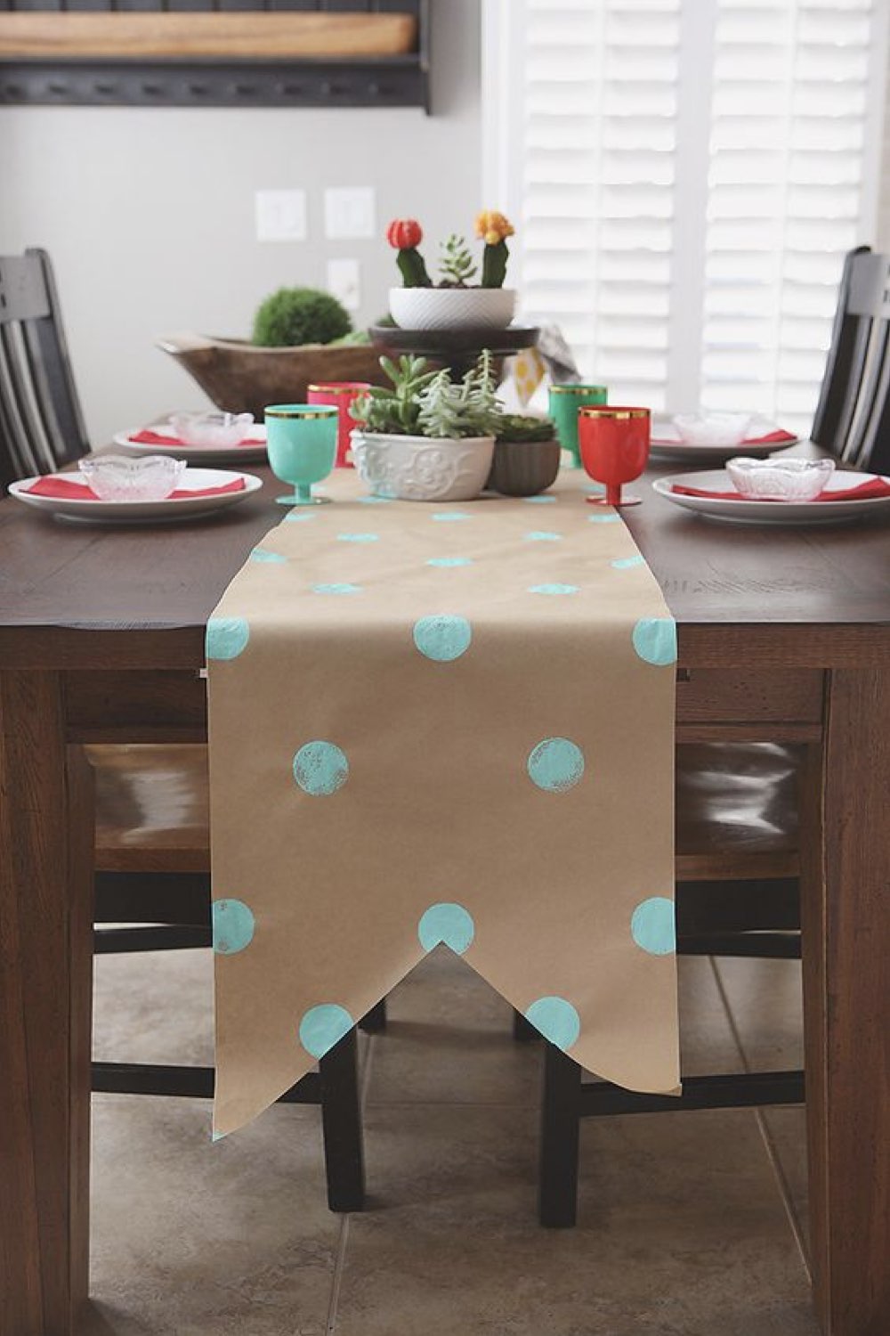 Un chemin de table en papier kraft et peinture