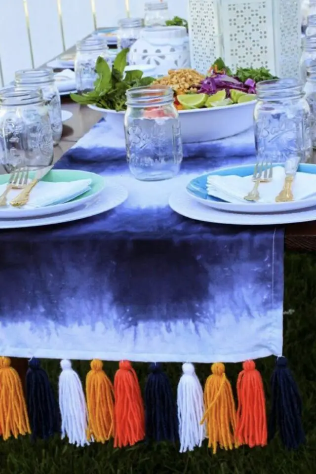 Un chemin de table avec un tie and dye fait maison