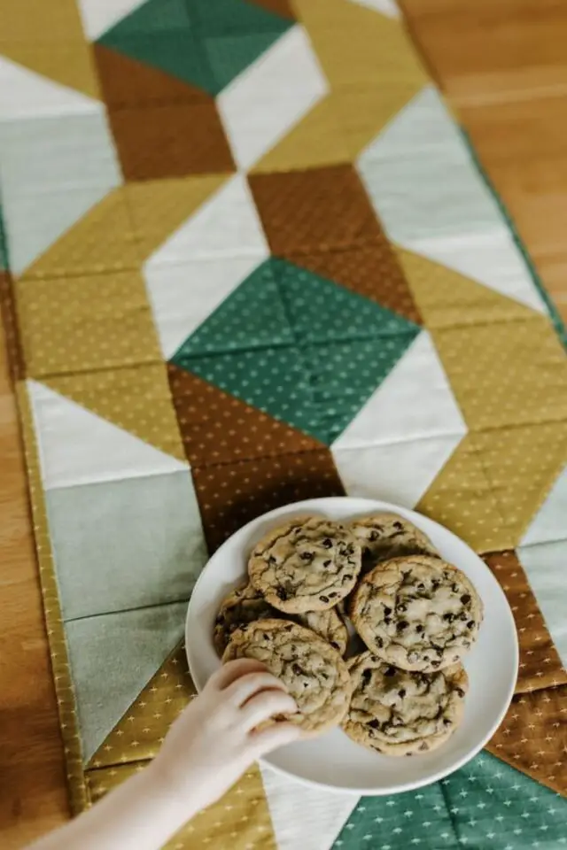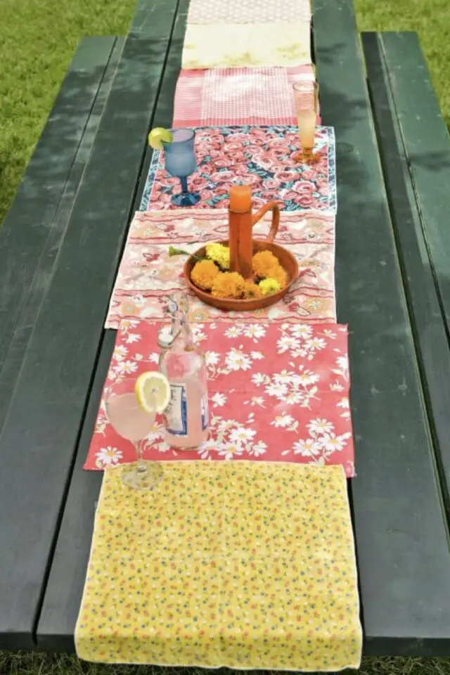 C'est probablement le modèle de chemin de table qui prendra le plus de temps à réaliser mais si vous êtes à l'aise en couture et que vous aimez le patchwork, c'est une idée parfaite pour créer une déco de table fait-maison.