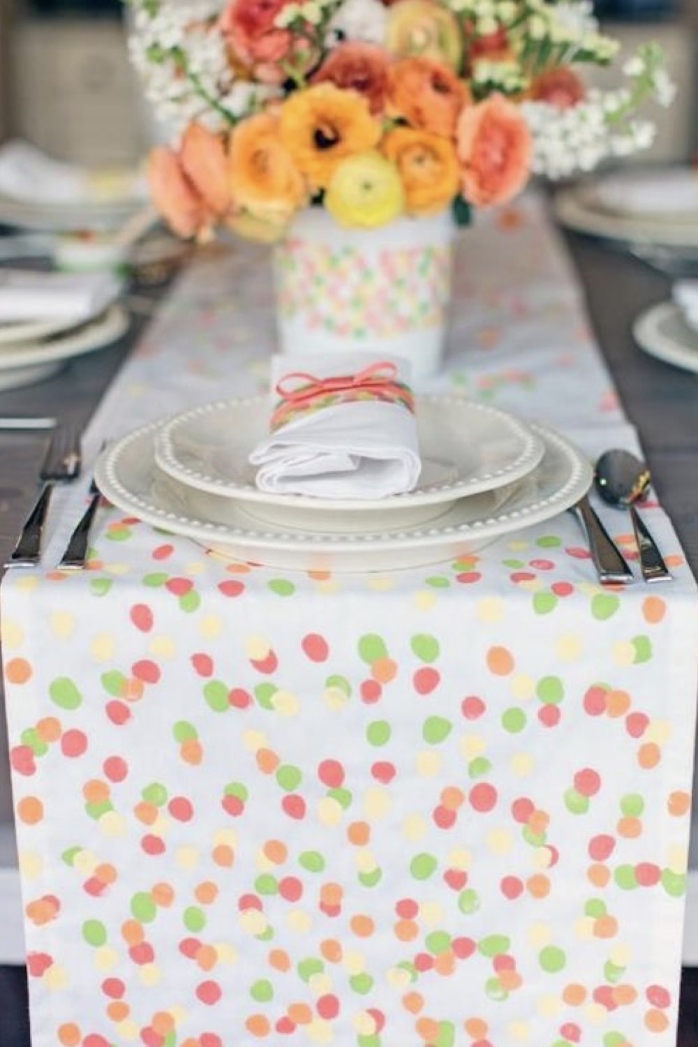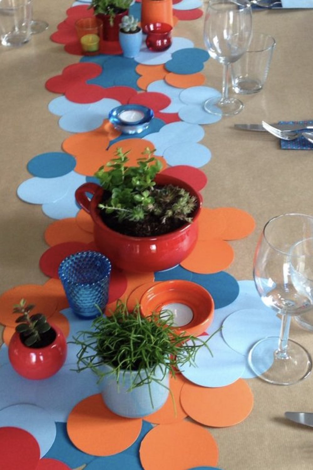 Confectionner un chemin de table avec des ronds de papier coloré