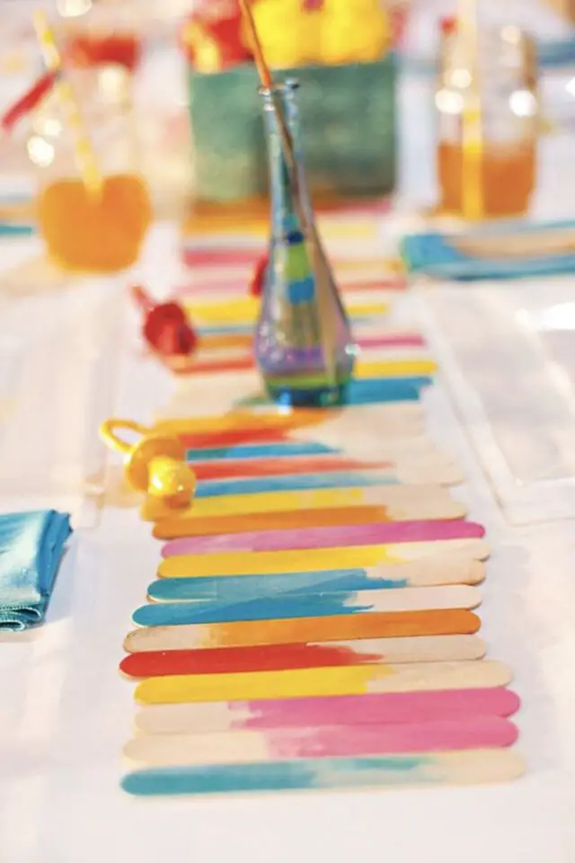 Confectionner un petit chemin de table multicolore avec des bâtonnets de glace